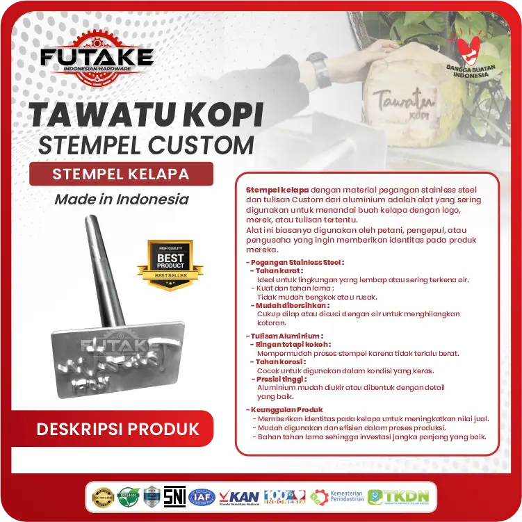 Jadi, tingkatkan citra kafe Anda sekarang! Dapatkan stempel kelapa premium ini dan biarkan setiap kelapa muda bercerita tentang kualitas bisnis Anda dengan menghubungi Futake Indonesia sekarang juga!